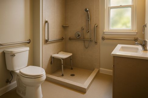 - Appuis : tabouret stable, barres dans les zones plus sollicitées.
